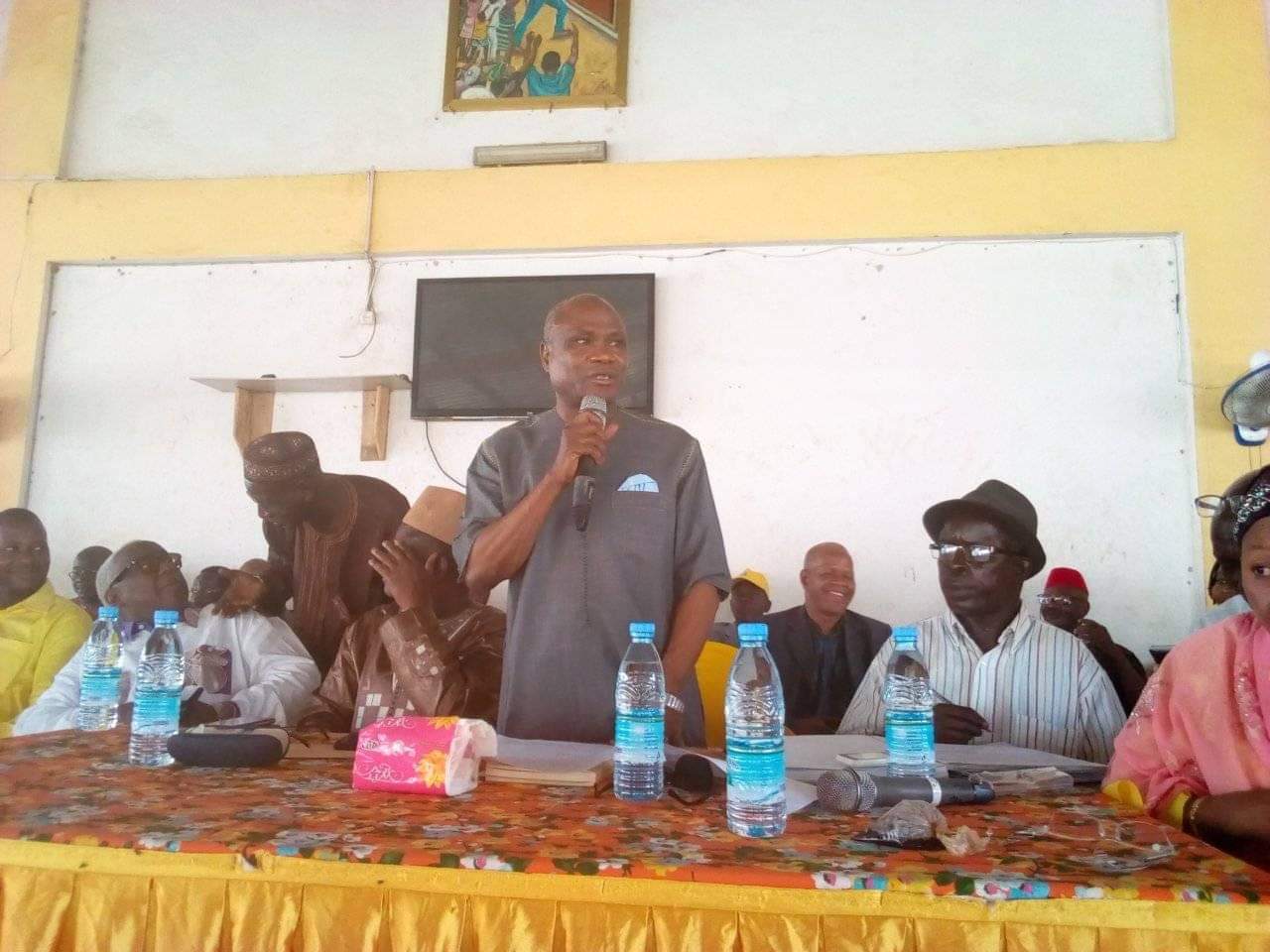 En assemblée générale, c’est N’Bany Sangaré, secrétaire général de la jeunesse du RPG Arc-en-ciel, qui a expliqué aux militants et sympathisants du parti au pouvoir les raisons de la tournée du chef de l’Etat. ‘’Le président de la République travaille pour la population. Il est allé à l’intérieur du pays pour comprendre les préoccupations de cette population. Partout où il passera, il posera des actes’’, affirme le directeur général de l’Office guinéen des chargeurs.