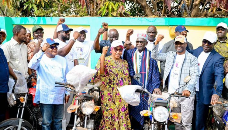 Le directoire préfectoral de campagne de la Génération pour la modernité et le développement (GMD) à Labé a bénéficié, ce dimanche, d’un important soutien logistique et financier. Cet appui, offert par l’ancien ministre des Mines, Ahmed Kanté, à travers le mouvement Rouge-Jaune-Vert dont il est le parrain, se compose de cinq motos neuves accompagnées d’une enveloppe financière symbolique.