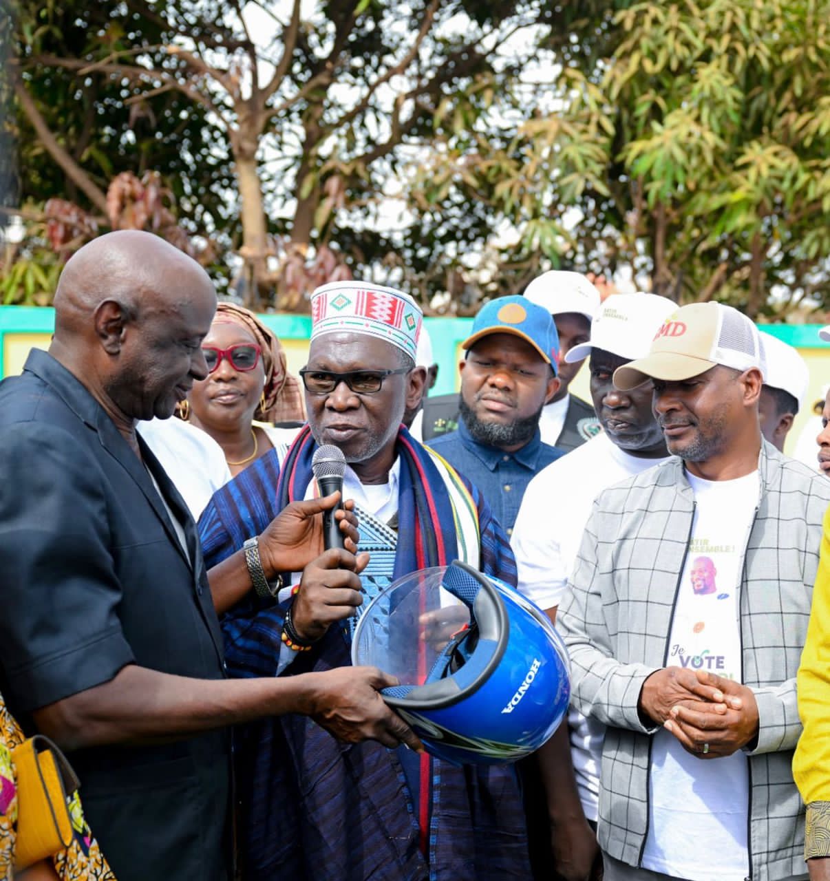 La remise officielle des engins a eu lieu au quartier général du directoire préfectoral de campagne de la mouvance GMD à Labé, en présence des responsables locaux de la campagne et des autorités administratives.