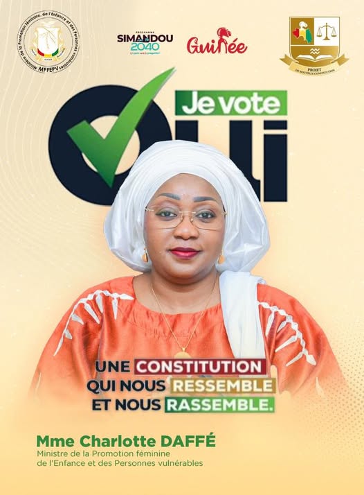 ‘’En votant Oui, vous contribuez à bâtir une Guinée où la justice sociale, l’égalité des chances et la protection des plus fragiles deviennent des réalités tangibles’’, a assuré la ministre Charlotte Daffé.