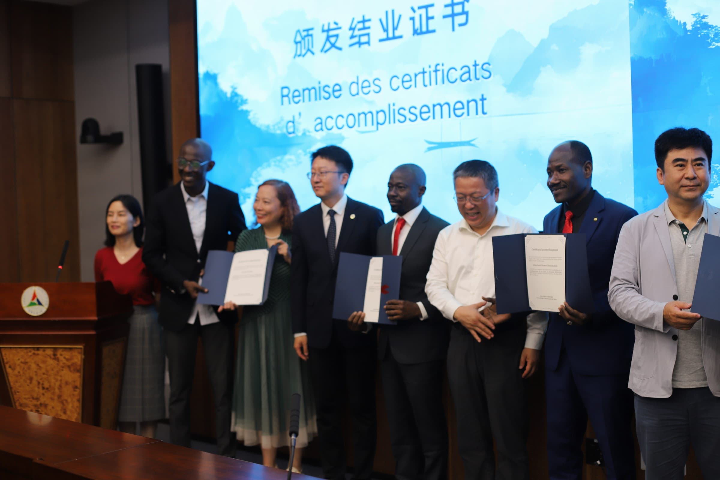 Pour les journalistes africains francophones, la clôture du programme a été marquée par une cérémonie de remise de certificats qui s’est tenue le mercredi 2 juillet 2025 à l’Université de Communication de Chine. L’événement a eu lieu en présence de hauts responsables de l’Université, soulignant l’importance que les organisateurs du programme accordent à cette collaboration.