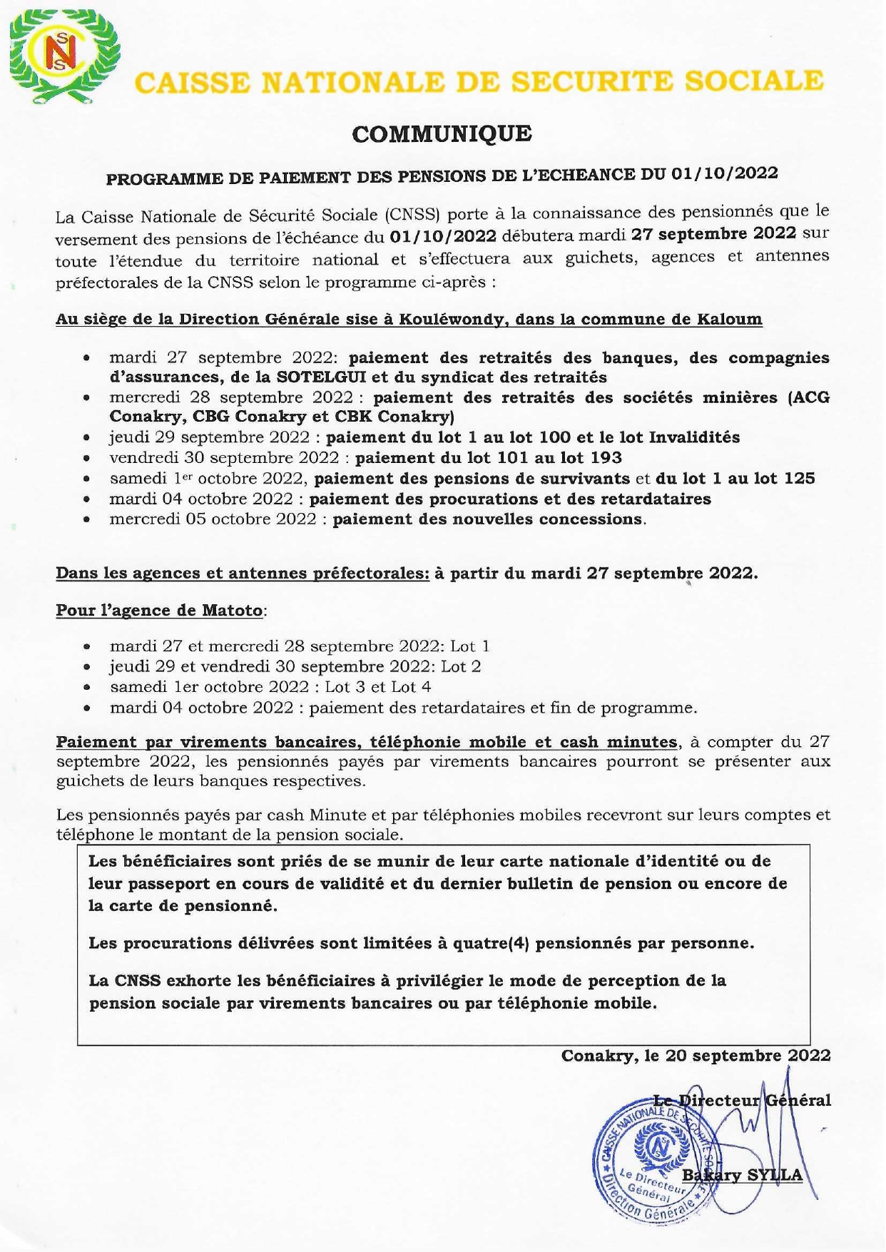 CNSS : Programme de paiement des pensions de l’échéance du 1er octobre 2022 Annonces Last updated Sep 20, 2022 0 Share 0 Share
