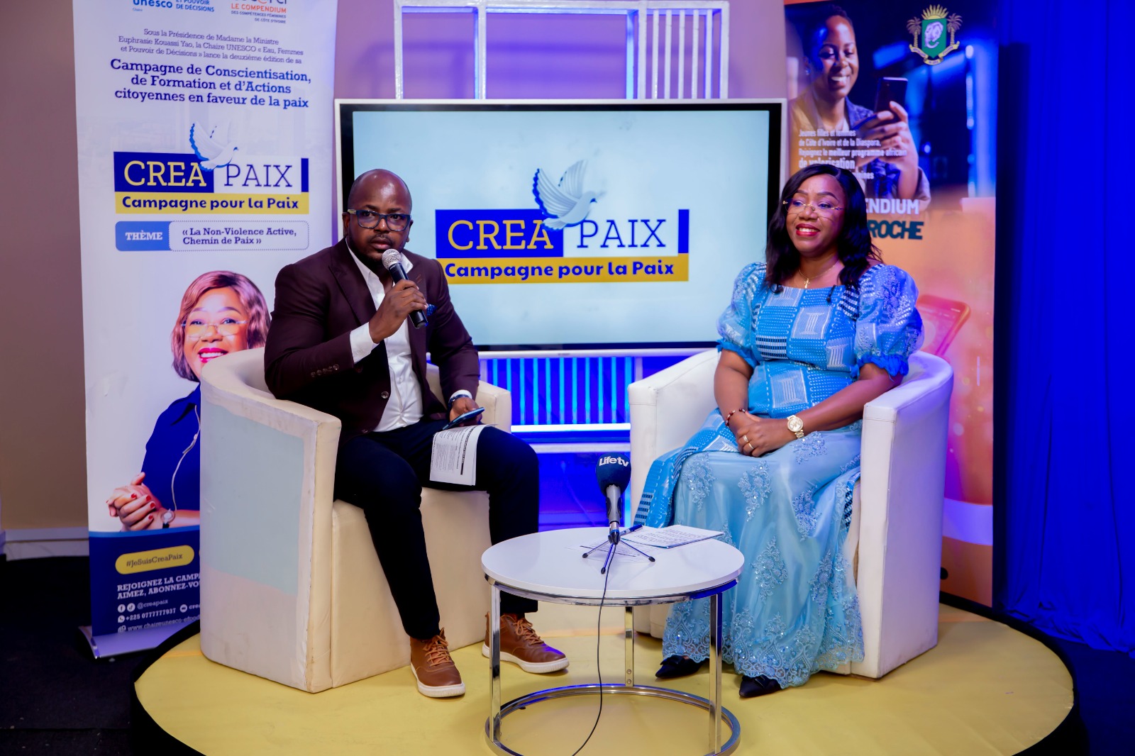 Le 31 juillet 2025, une web-conférence internationale est venue renforcer la visibilité du programme. Animée par le journaliste Yves De Mbella, sous le thème : « CREA-Paix, une approche innovante de l’engagement politique et citoyen des femmes et des jeunes », la rencontre a réuni des personnalités influentes telles que Dr Euphrasie Kouassi Yao, Mme Élisabeth Moreno et Dr Harbeen Arora Rai. Le format hybride de l’événement, diffusé via Zoom, Facebook et YouTube, reflète la volonté d’ouverture et d’inclusion portée par CREA-PAIX.