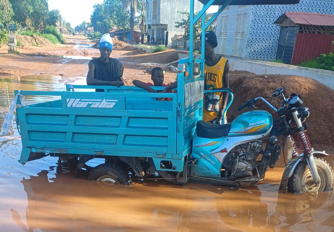 Même son de cloche chez Laye Camara, conducteur de tricycle, tombé en panne dans une flaque d’eau depuis des heures. Trempé, il lutte pour sortir son engin de ce bourbier.