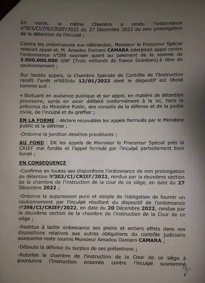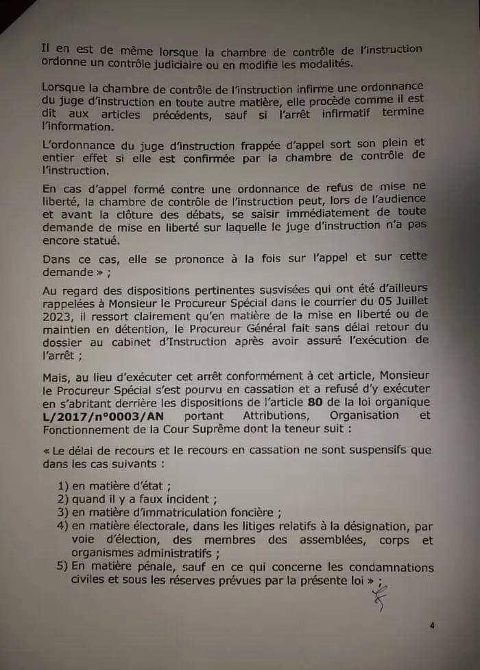 Pour l’ancien patron de l’assemblée nationale, ‘’cette insuffisance professionnelle résulte du refus de Monsieur le procureur spécial d’exécuter l’arrêt N°003 du 12/01/2023 rendu par la chambre spécial de contrôle l’instruction de la CRIEF’’.