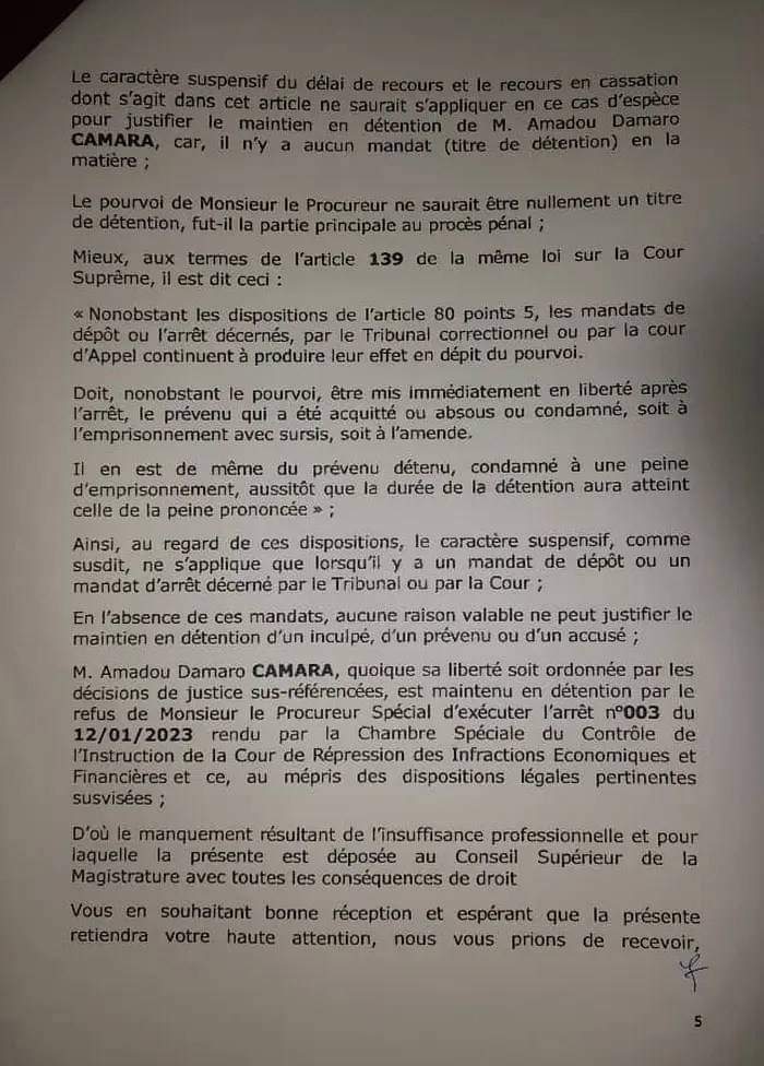Amadou Damaro Camara a saisi la Conseil supérieur de la magistrature pour des manquements résultant de ‘’l’insuffisance professionnelle’’ du procureur Aly Touré, faute disciplinaire prévue et punie par l’article 35 de la Loi organique portant statut des magistrats.
