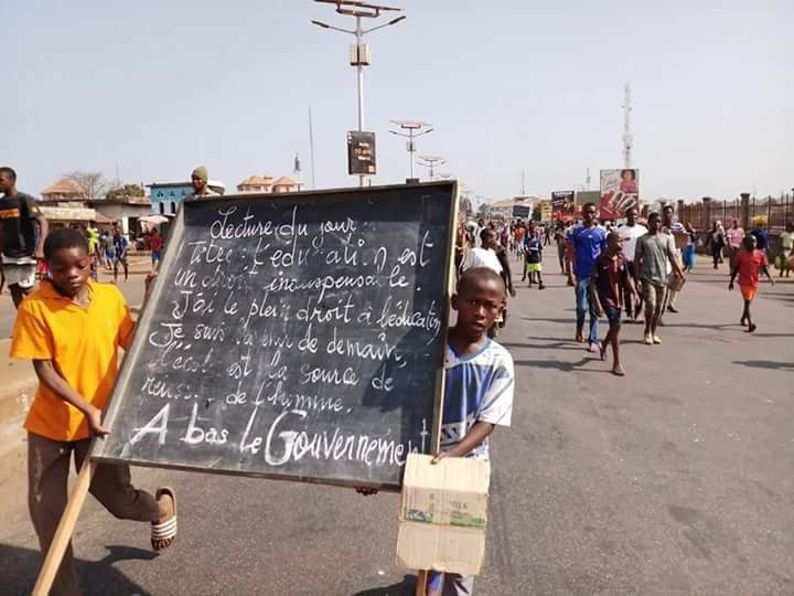 A Cosa, deux gamins, munis d’un tableau noir, occupent le devant. ‘’L’éducation est un droit indispensable. J’ai le plein droit à l’éducation. Je suis l’avenir de demain. L’école est la source de la réussite de l’homme. A bas le gouvernement’’, pouvait-on lire.