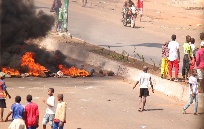 Seules des motos assurent le transport dans la zone. Au marché Koloma, des heurts sont signalés entre agents des forces de l’ordre et une horde de jeunes. Des pneus sont brûlés sur le bitume en guise de barricades.