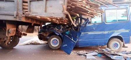 Le munibus qui transportait les joueurs du club de Boké a fini sa course à l’arrière d’un camion immobilisé sur la route à Friguiadi, peu après Coyah.