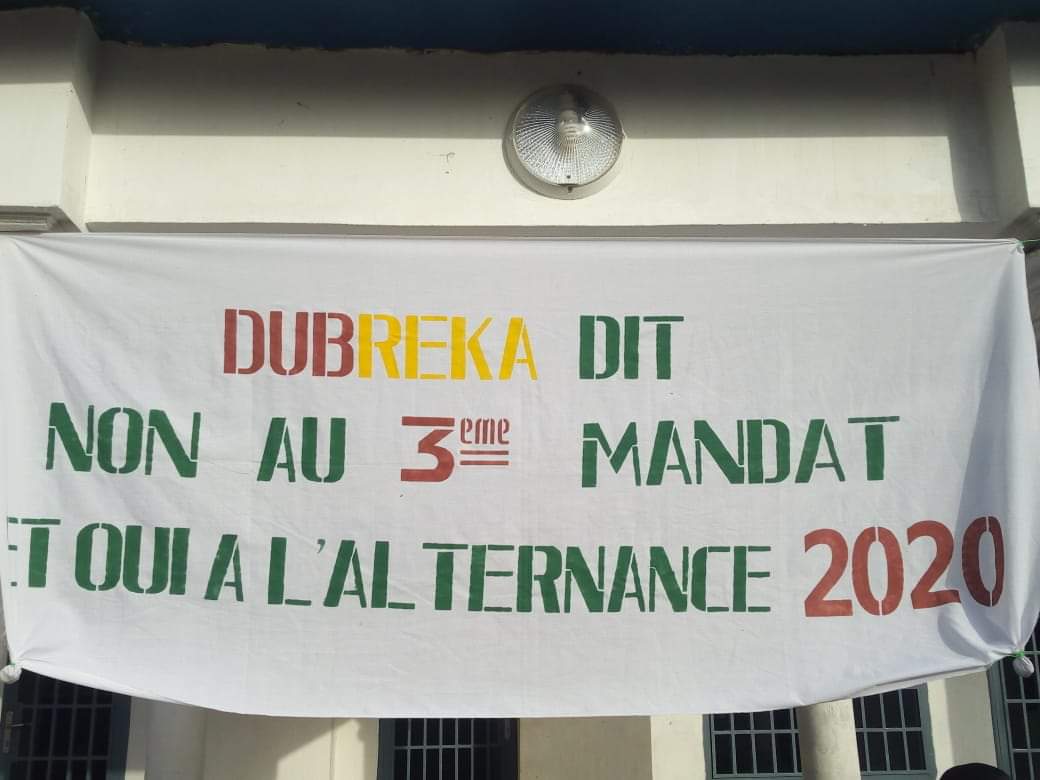 Ils se sont réunis dans la cité de cité de Samba Toumani avec des banderoles sur lesquelles on pouvait lire : « Dubreka dit non au projet de révision constitutionnelle » ou encore « Dubreka dit non au 3e mandat et Oui à l’alternance en 2020 ».