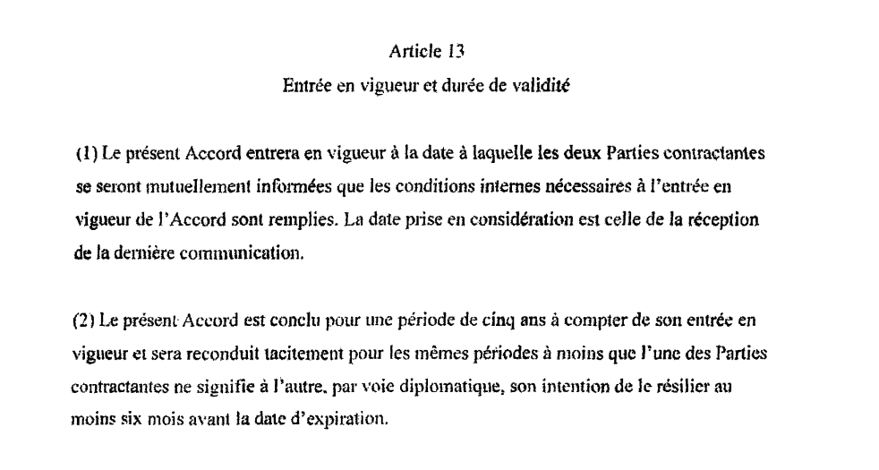 L’accord bilatéral en matière de migration a été signé le 5 janvier 2018 et est entré en vigueur le 7 février 2019. Il encadre à la fois la migration légale et la gestion de l’immigration irrégulière entre les deux pays, notamment les procédures d’identification et de retour des ressortissants guinéens sans titre de séjour valide. Signé sous l’ère Alpha Condé, ce texte a été suspendu pendant quatre ans par les nouvelles autorités guinéennes pour réexamen, avant une tacite reconduction ( article 13 alinéa 2 -Page 14).