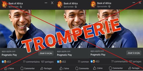Cette vidéo (lien archivé d’un démenti) qui prétend montrer le joueur international français Kylian Mbappé présenté sa supposée application est fausse. Il s’agit d’une Deepfake malveillante. Dans la vidéo de 56 secondes publiée le 1er mars sur le réseau social Facebook, de la 7e seconde à la 15e seconde, on aperçoit le célèbre footballeur, vêtu d’un costume-cravate noire avec une chemise blanche, annoncer le lancement d’une application pouvant rendre riches les internautes guinéens.
