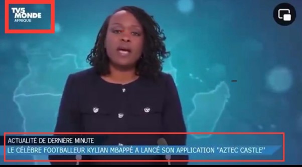 « Mon application Aztec castel sera limitée dans le temps. Elle fonctionnera exactement pendant 30 jours », entend-on dans la vidéo dont les propos sont attribués au champion du monde de football 2018, qui s’empresse d’encourager les utilisateurs à utiliser l’appli : « Dépêchez-vous de la télécharger et devenez plus riche.» (SIC)