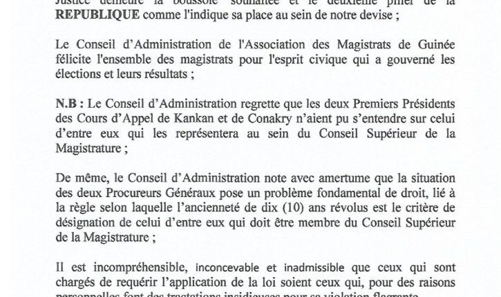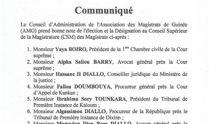 Important communiqué du Conseil d’Administration (CA) de l’Association des Magistrats de Guinée (AMG) Annonces Last updated Mar 13, 2022 0 Share 0 Share