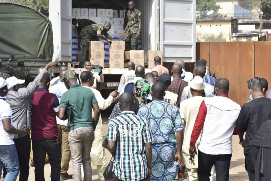 Il s’agit de plusieurs tonnes de riz, de cahiers, des vêtements et une somme d’argent en faveur des familles des élèves victimes de l’incendie dévastateur de Kaloum.