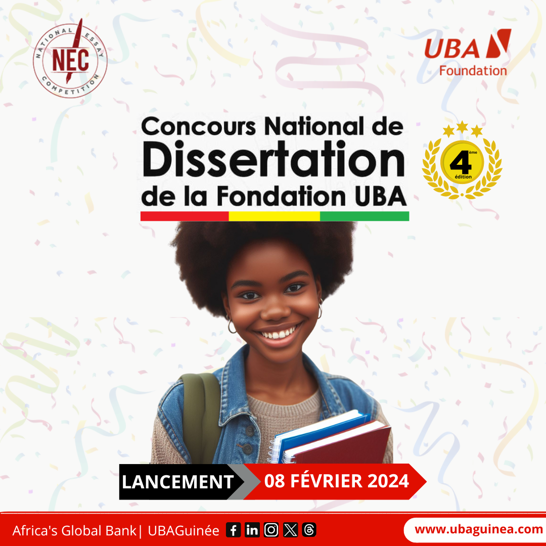 Après les trois (3) premières éditions qui ont connu un franc succès avec plusieurs élèves primés, la fondation UBA lance la quatrième édition du concours national de dissertation. La cérémonie de lancement a eu lieu ce jeudi 8 février 2024 au siège de la United Bank of Africa (UBA) à Kaloum.