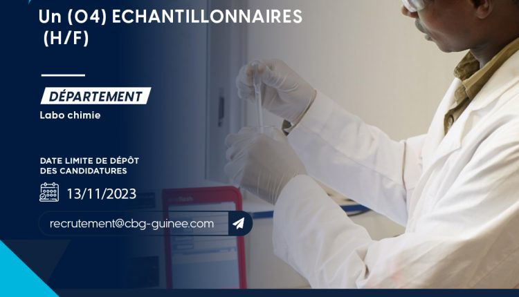 Dans le cadre de ses activités, la Compagnie des Bauxites de Guinée (CBG) S.A recherche pour son site de Kamsar Quatre (04) échantillonneurs.