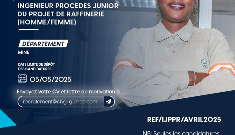 La CBG recrute un (01) ingénieur procédés junior pour son projet de raffinerie
