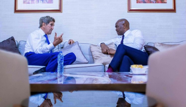 Les discussions mondiales sur le changement climatique sont axées sur les énergies vertes et renouvelables. Cependant, le focus de l’Afrique doit etre et rester, fournisseur de l’énergie à partir de sources traditionnelles et vertes pour ses citoyens – c’était l’objet de mes échanges avec le sénateur John Kerry, ancien secrétaire d’État et actuel envoyé présidentiel spécial des États-Unis d’Amérique pour les questions climatiques, ainsi que le PDG de Heirs Oil and Gas (HHOG), Osa Igiehon, à Transcorp Hilton Abuja, hier.