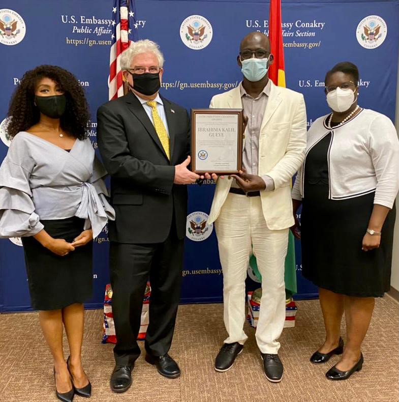 [dropcap]L[/dropcap]e Chargé d’Affaires par intérim, M. Steven Koutsis a procédé aujourd’hui à la remise du Prix du Champion de la lutte contre la corruption à Ibrahima Kalil Guèye à l’Ambassade des Etats-Unis à Conakry, suite à l’annonce par le Secrétaire d’Etat, M. Antony Blinken des 12 personnes primées, le 23 février dernier.