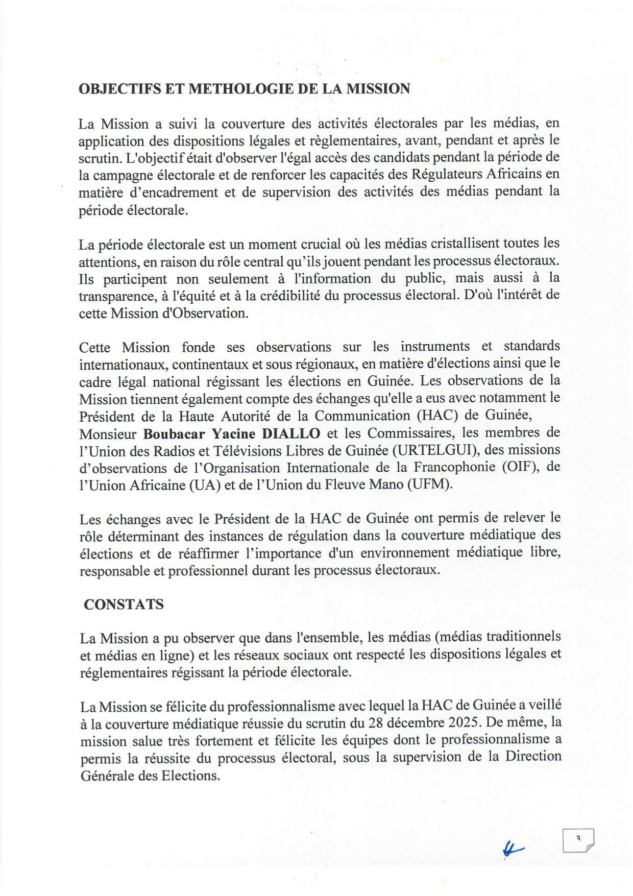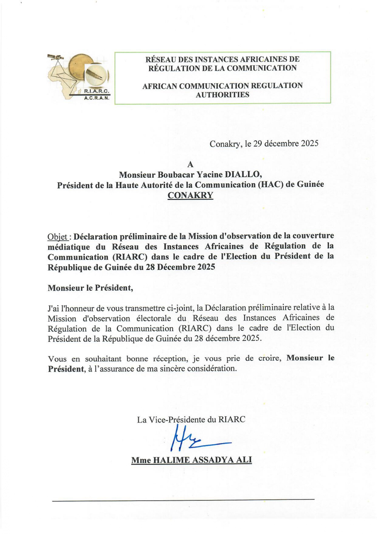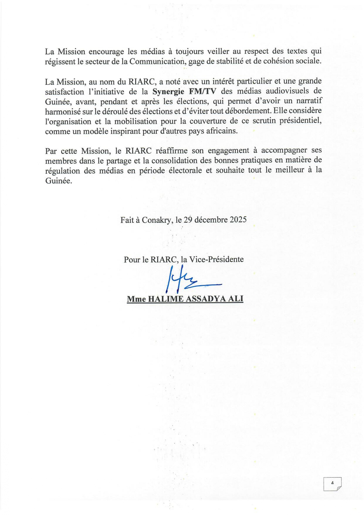Le Réseau a salué le professionnalisme de la HAC dans la gestion de la couverture des élections du 28 décembre 2025, contribuant ainsi à garantir la transparence, l’intégrité et la crédibilité du processus électoral.