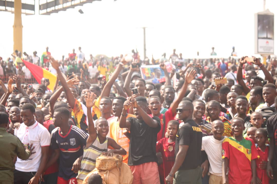 Supporteurs et curieux, amassés aux abords de l’autoroute Fidel Castro, acclament les poulains de Lappé Bangoura qui sont rentrés au bercail avec la médaille de bronze.