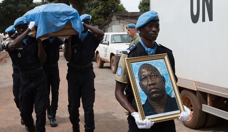 [dropcap]C’[/dropcap]est dans une atmosphère de recueillement et d’émotion que se sont réunis, ce vendredi 7 septembre 2018, le Représentant spécial du secrétaire général des Nations Unies, Parfait Onanga-Anyanga, le Représentant spécial adjoint chargé des affaires politiques et la protection des civils, Kenneth Gluck, le commissaire par intérim de la composante police (UNPol), le Colonel Ossama El Moghazy, le directeur général de la Police centrafricaine, le Commissaire principal Jean-Claude Zoubanda, ainsi que de plusieurs membres du leadership, chefs de sections et personnels civils et militaires de la MINUSCA.