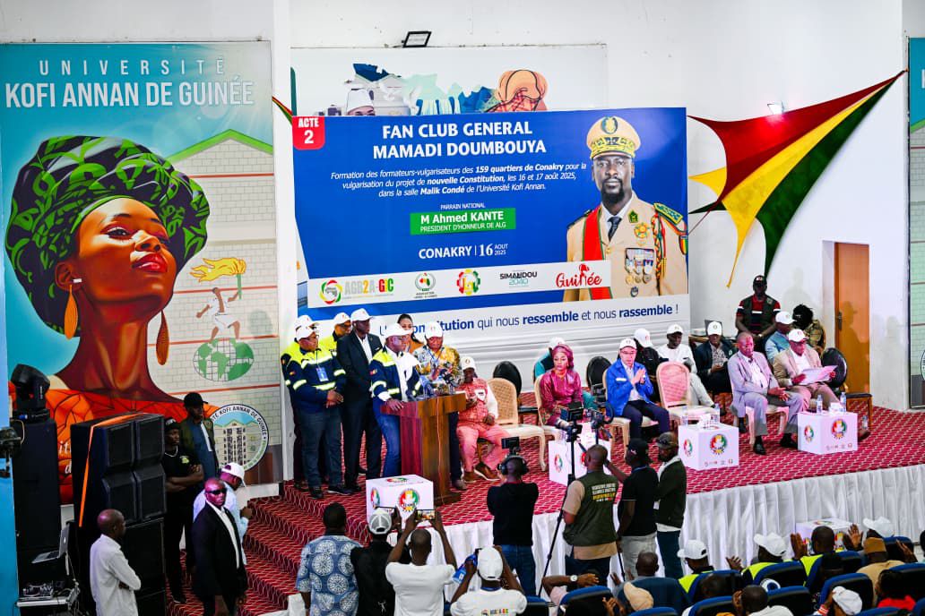 Ce samedi 16 août 2025, la salle Malick Condé de l’Université Kofi Annan a accueilli une rencontre d’envergure : la formation des formateurs-vulgarisateurs issus des 159 quartiers de Conakry.