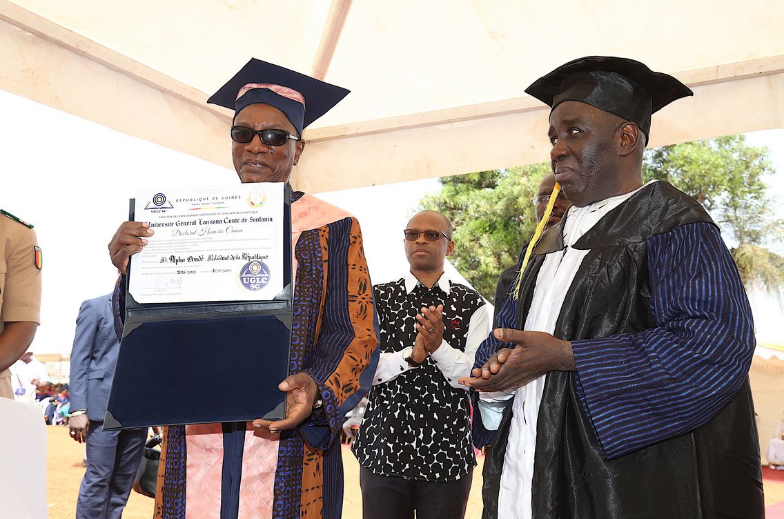 [dropcap]L[/dropcap]e président de la République a été élevé vendredi au grade de docteur honoris causa par l’université Général Lansana Conté de Sonfonia. Ce titre honorifique a été décerné à Alpha Condé en reconnaissance, dit-on, des services a rendus à l’école guinéenne.