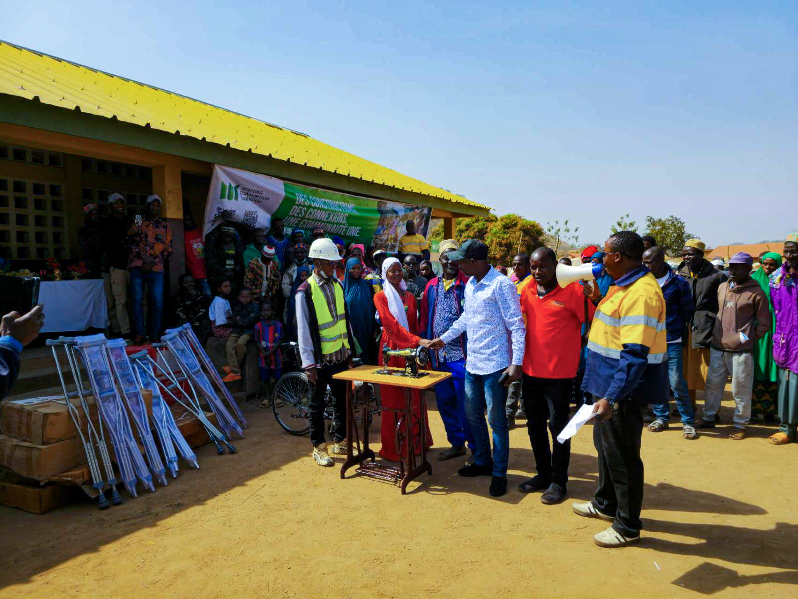 Dans ce cadre, des équipements visant à promouvoir des activités génératrices de revenus, notamment dans le secteur de la couture, ont été remis à des familles affectées par le projet. En parallèle, un appui ciblé a été apporté à des personnes en situation de handicap issues des localités de Gbantamayah et d’Ourékaba, afin de faciliter leur mobilité et de renforcer leur intégration sociale.