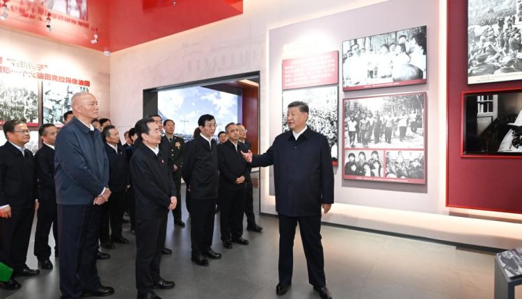 Xi Jinping visite l’exposition marquant le 70e anniversaire de la fondation de la région autonome ouïgoure du Xinjiang